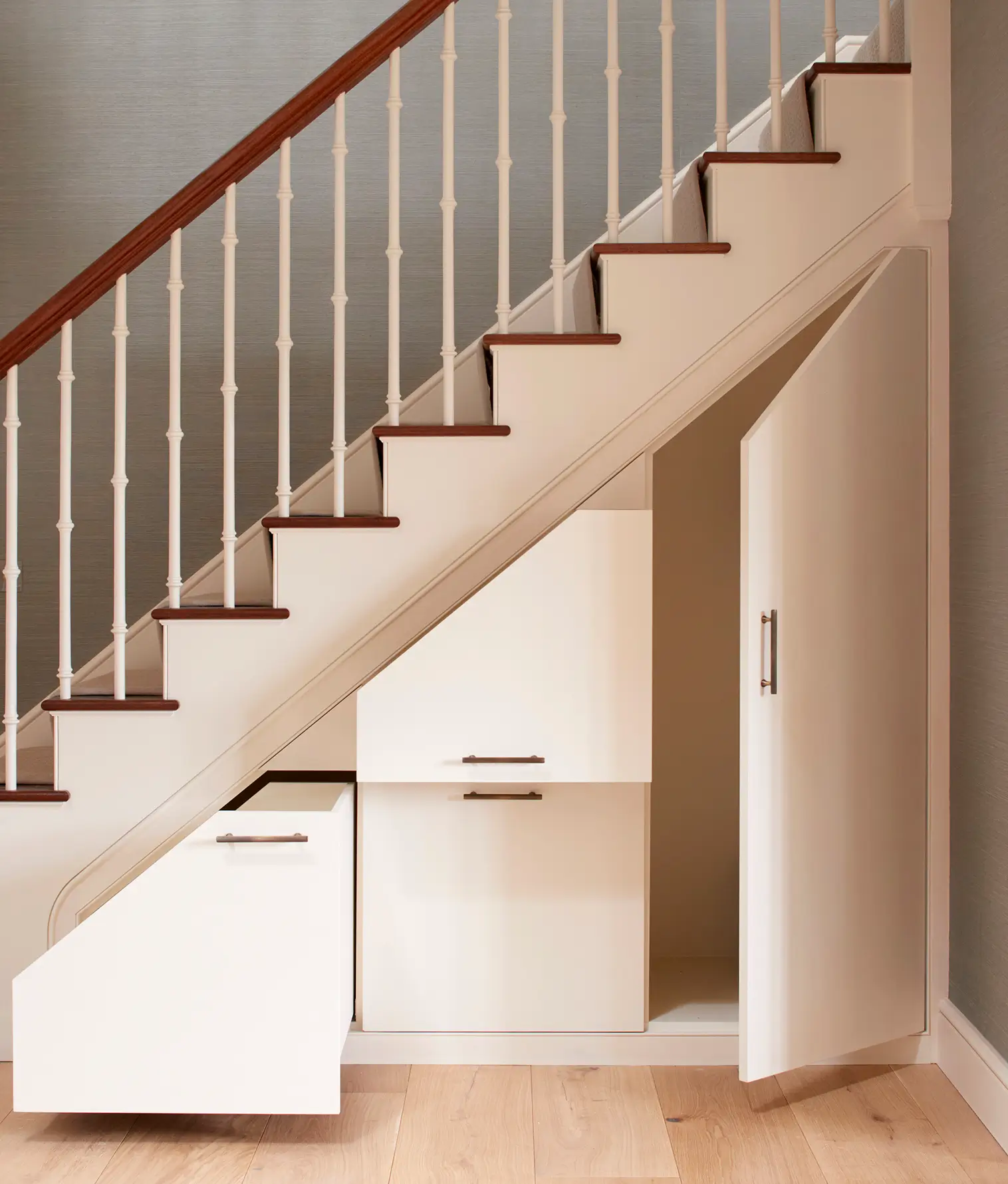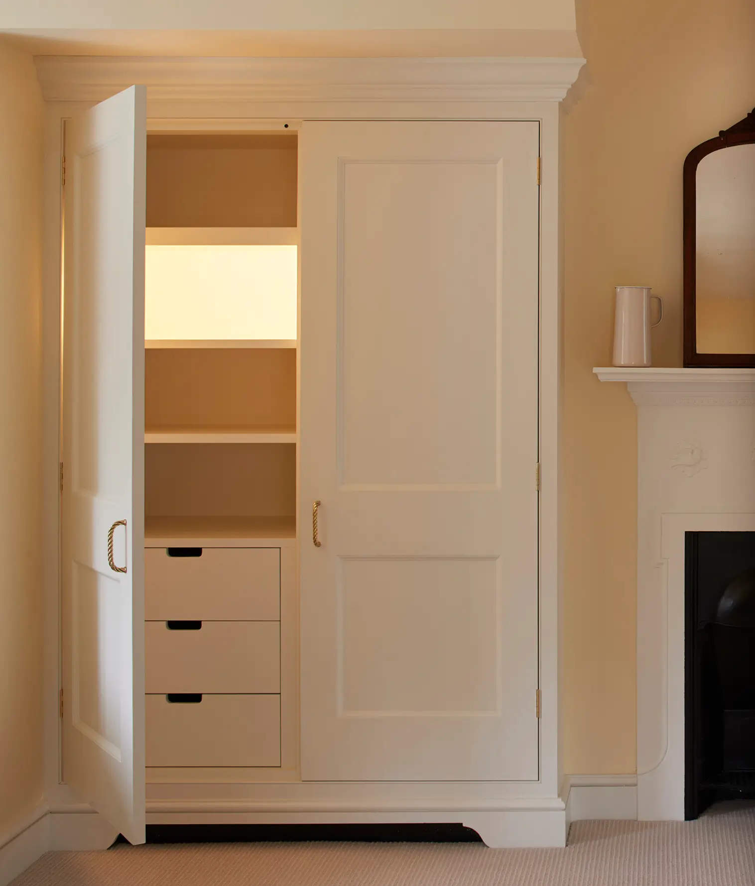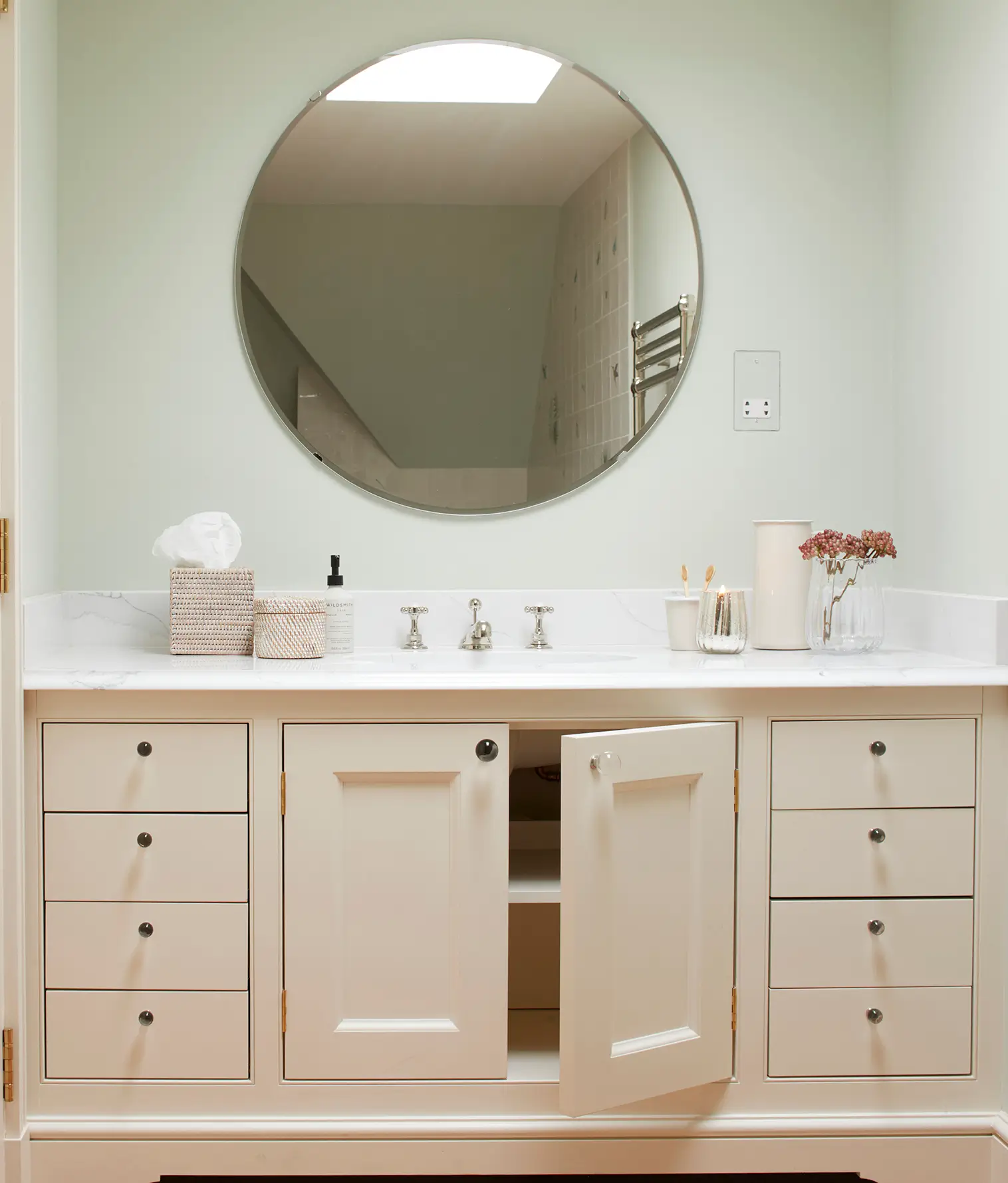 This Grade II Listed property in Hampshire, previously an estate laundry, was fully refurbished and restored. Internally, the reconfiguration of the building into a spacious four bedroom property incorporated custom-made cabinetry from Greenborne throughout, including freestanding units, wardrobes, and bespoke vanity units.